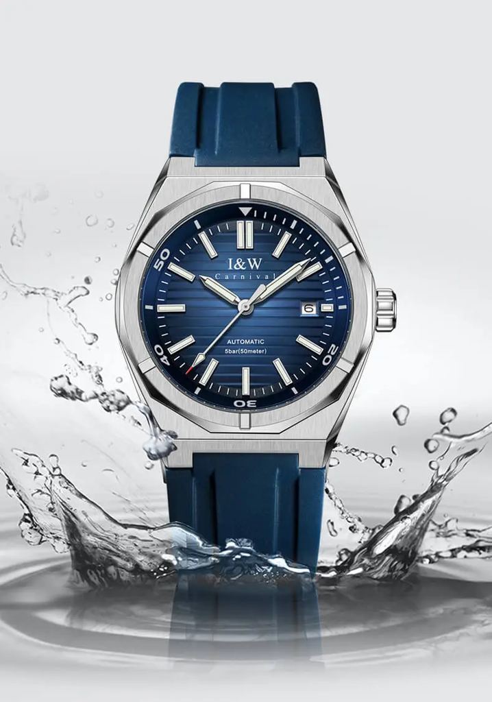 - Phong cách thiết kế Sport watch. - Chức năng: Lịch ngày (01-31) tại vị trí 3 giờ. - Kim và mặt số phủ dạ quang. - Case back xuyên thấu. |
