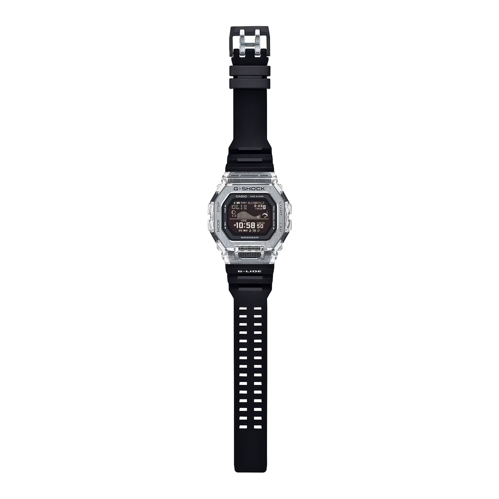 Có được độ bền và chức năng đáp ứng phong cách lướt sóng của bạn cũng như chất liệu và màu sắc mùa hè mà bạn yêu thích trong G-SHOCK từ dòng G-LIDE. Lấy cảm hứng từ cảnh lướt sóng mùa hè, gờ được làm bằng hai vật liệu khác nhau để gợi lên hình ảnh những con sóng lấp lánh dưới ánh nắng mặt trời. Mặt trên gờ, bằng thép không gỉ với các cạnh vát được tráng gương, tương phản tinh tế với độ trong mờ của đế gờ bằng nhựa. Dây đeo được làm bằng uretan sinh học và có khe hở để vừa vặn hơn cũng như giúp thoát nước và mồ hôi. Các thành phần nhựa chính được sử dụng cho dây đeo được làm bằng nhựa sinh học, một loại vật liệu được kỳ vọng sẽ giúp nhằm làm giảm tác động đến môi trường. Tất cả những điều này mang lại cảm giác đeo thoải mái mà bạn đang tìm kiếm để bạn có thể tập trung vào việc lướt sóng. Có đầy đủ tính năng trong tầm tay với Kết nối điện thoại thông minh. Chỉ cần sử dụng ứng dụng chuyên dụng để chọn một trong khoảng 3.300 điểm lướt sóng chính trên khắp thế giới và gửi các mô hình thủy triều cùng điều kiện ánh sáng ban ngày cụ thể theo vị trí đến đồng hồ. Màn hình LCD MIP độ nét cao cũng cải thiện khả năng hiển thị và cung cấp đồ thị thủy triều và tuần trăng rõ ràng, cũng như thời gian và mực thủy triều cao/thấp và thời gian mặt trời mọc/lặn — tất cả chỉ trong nháy mắt. Chiếc đồng hồ này được chế tạo để giúp những vận động viên lướt sóng chuẩn bị cho các cuộc thi khắc nghiệt trên toàn thế giới.